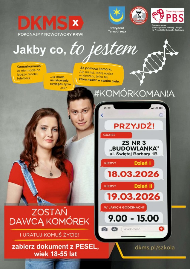 Być Swiadomym dawcą Szpiku 9 marzec 2026 - SP nr3 Budowlanka Tarnobrzeg